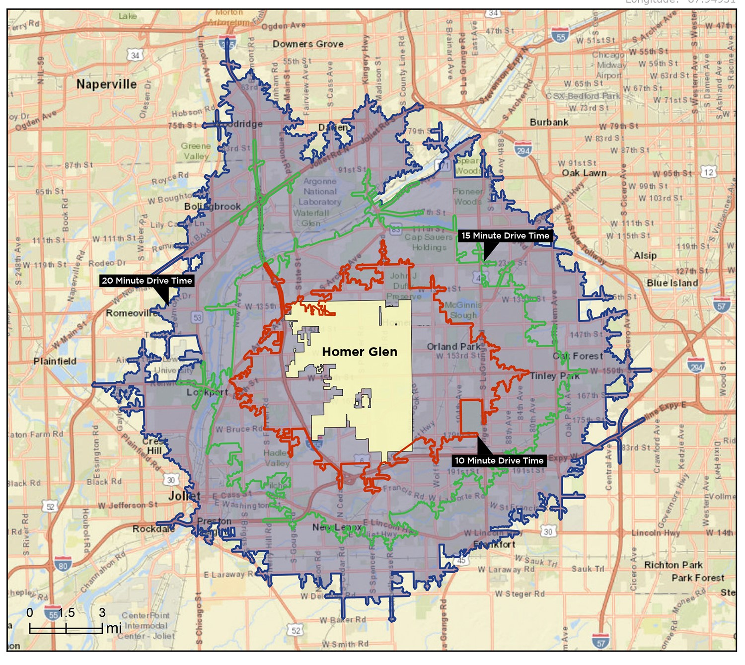 along I-355 and easy access to I-55 and I-80. - Three high traffic Commercial Corridors: